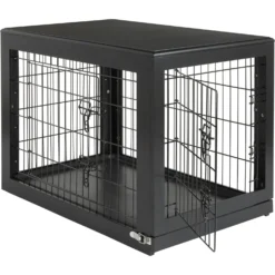 Frisco Double Door Furniture Style Dog Crate, Black & Frisco Swirl Dog Crate Mat