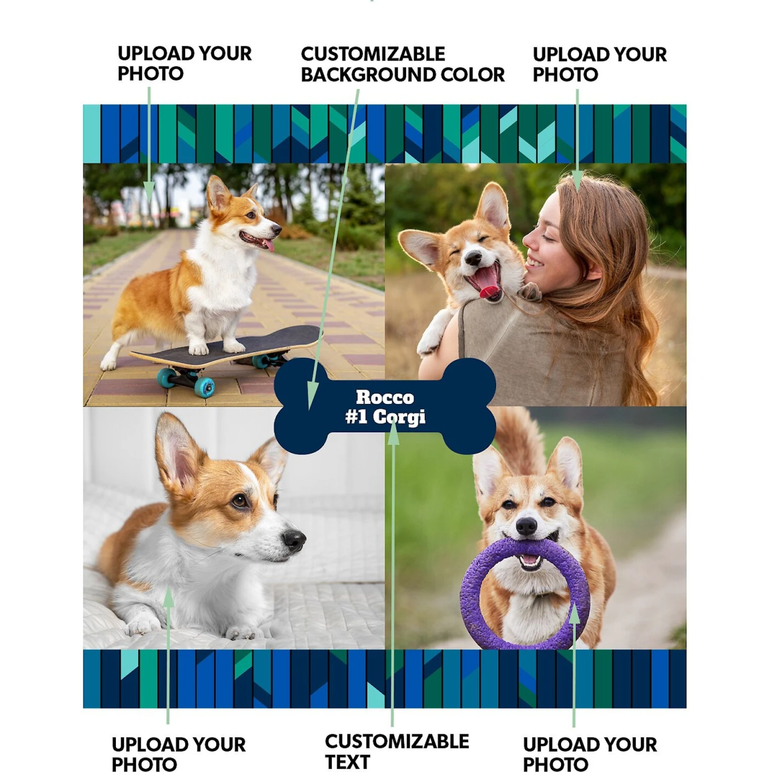 - Customizable text at the top lets you make it truly unique, just like your pet.