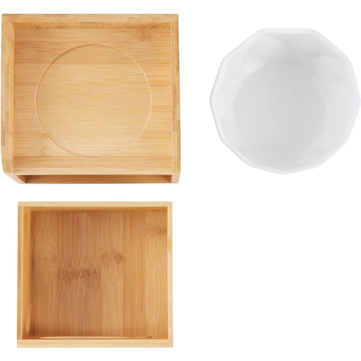 Frisco Elevated Non-Skid Ceramic Bowl & Bamboo Storage
