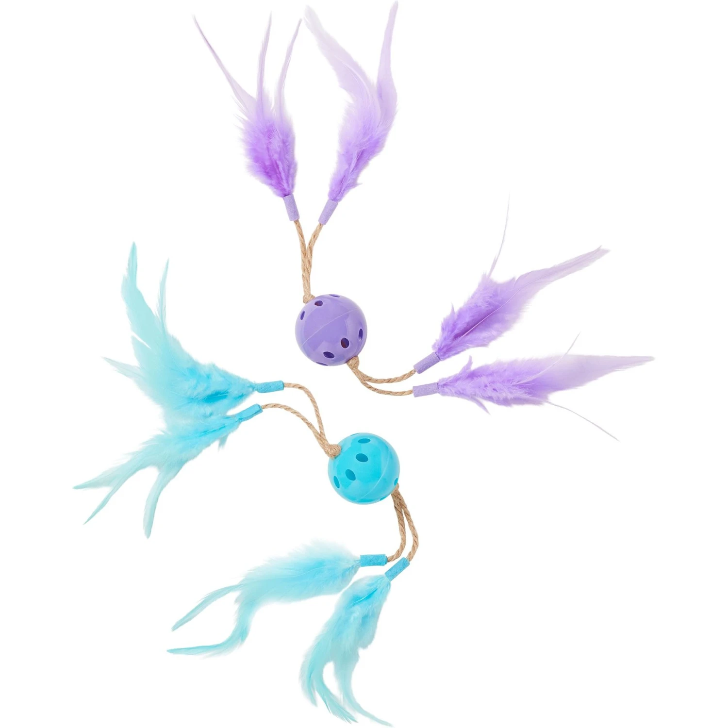 Frisco Feather & Play Plastic Balls Cat Toy, 2 Count