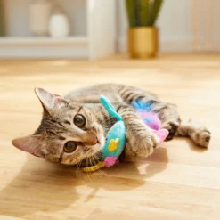 - When it’s playtime, your kitty can bat around the soft toy ball that hangs down from the top of the bed.