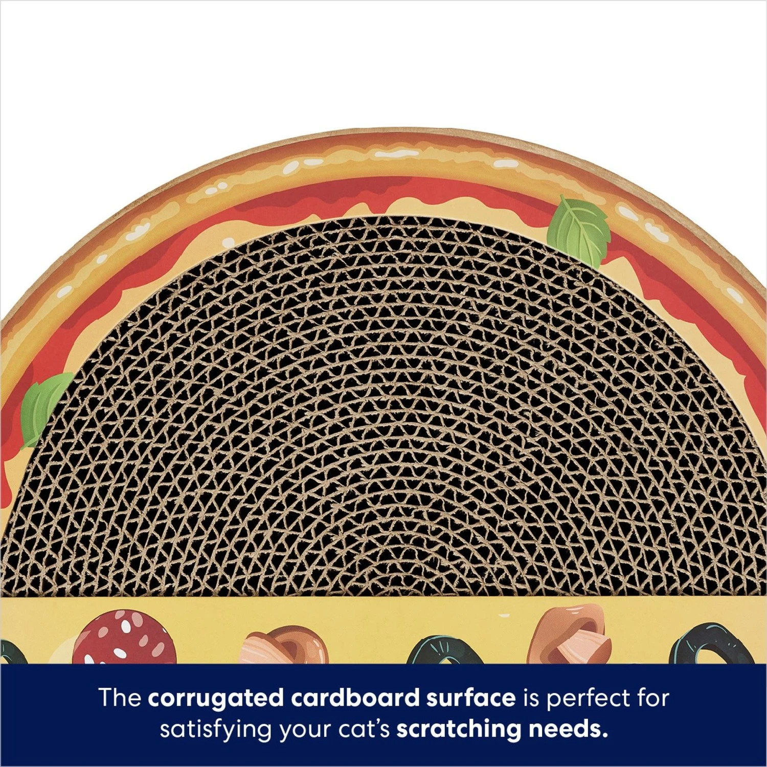 - The multicolored pizza print helps lure kitty claws away from your furniture by offering a more productive outlet for their scratching urges.