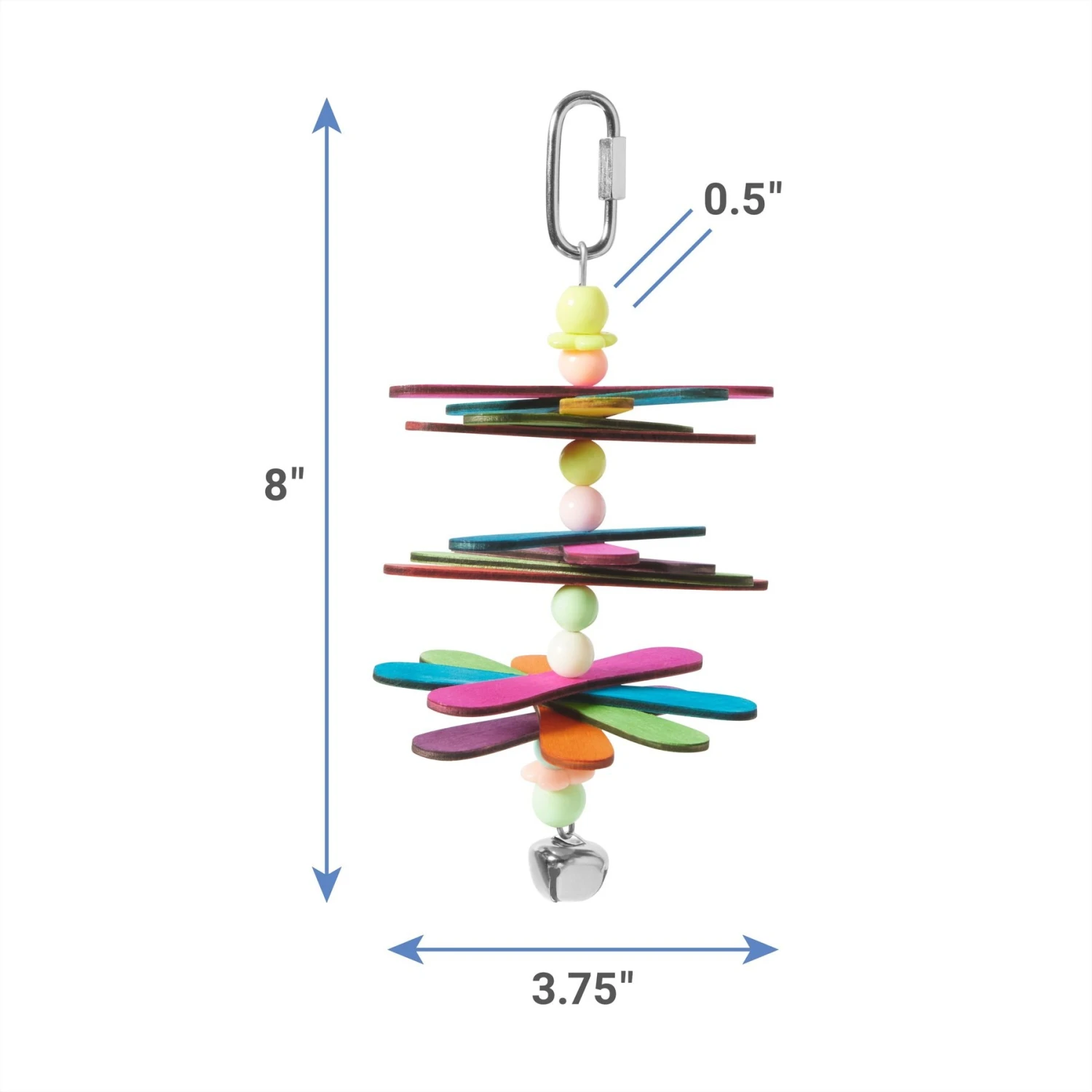 - Watch as your bird is fascinated by the different colors, sizes and shapes that look just like popsicle sticks. Oh, and don’t forget the bell for that bonus bit of fun.