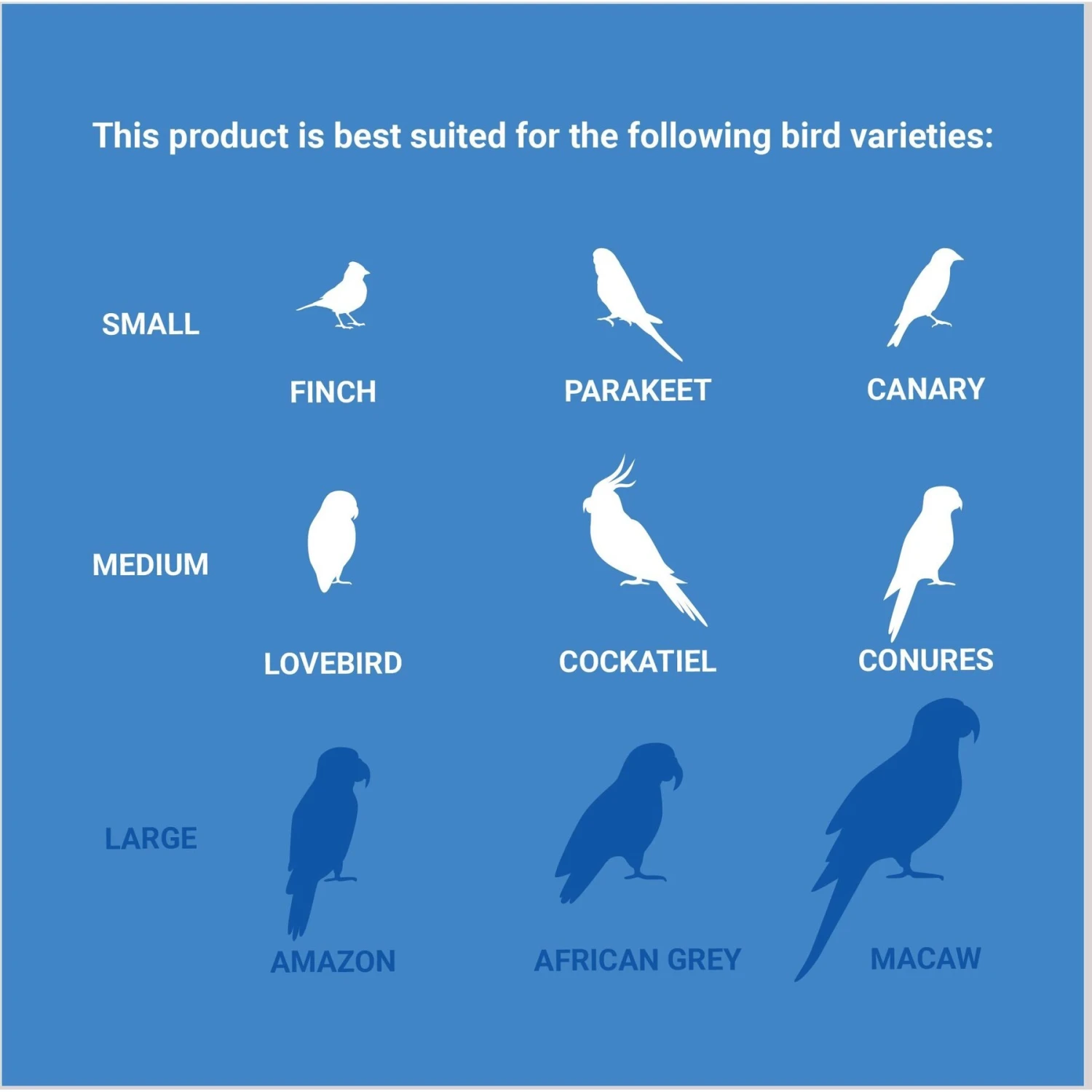 - Features a clasp and hook so you can hang it anywhere for playdates. Best suited for small Parrots, Parakeets, Lovebirds, Finches, Canaries and Cockatiels.
