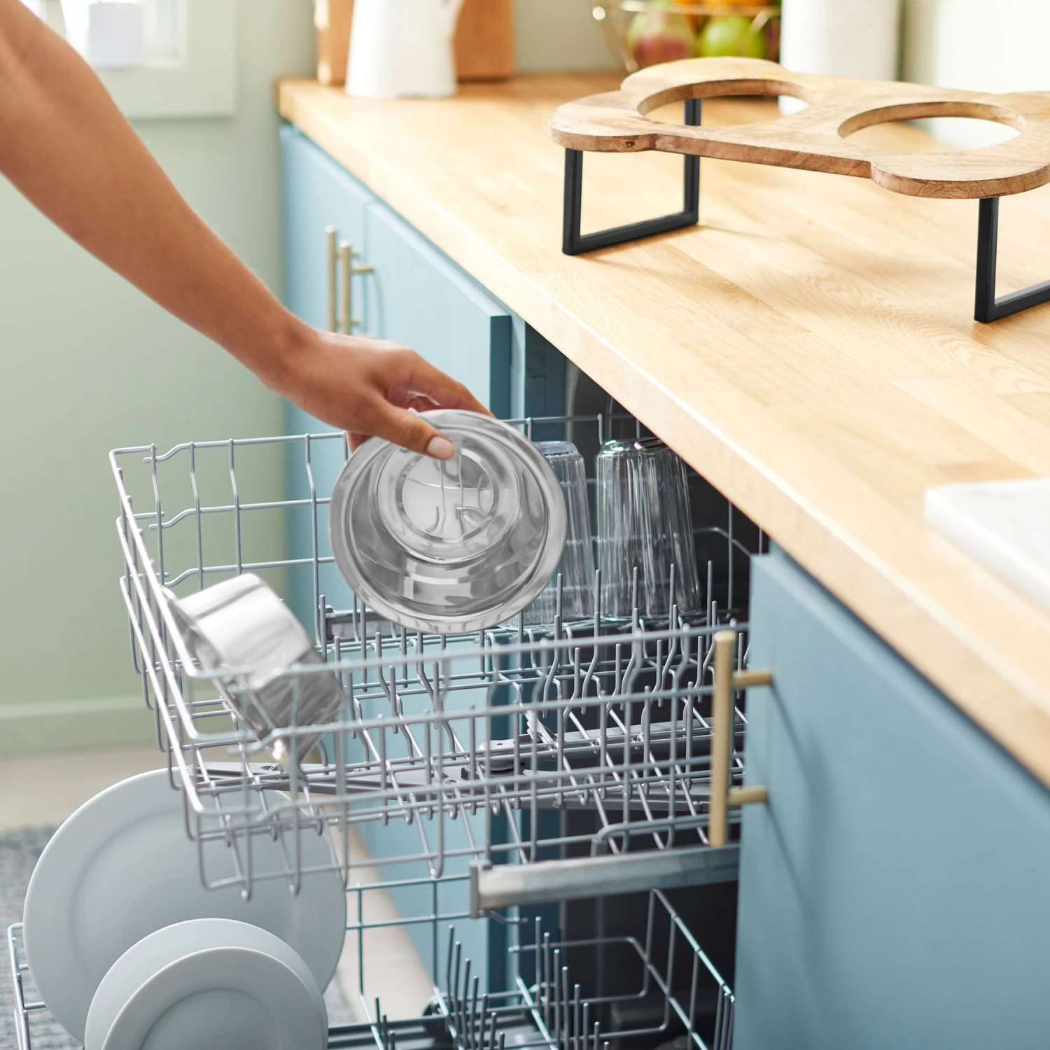 - Removeable stainless-steel bowls are dishwasher safe, making cleanup even easier.