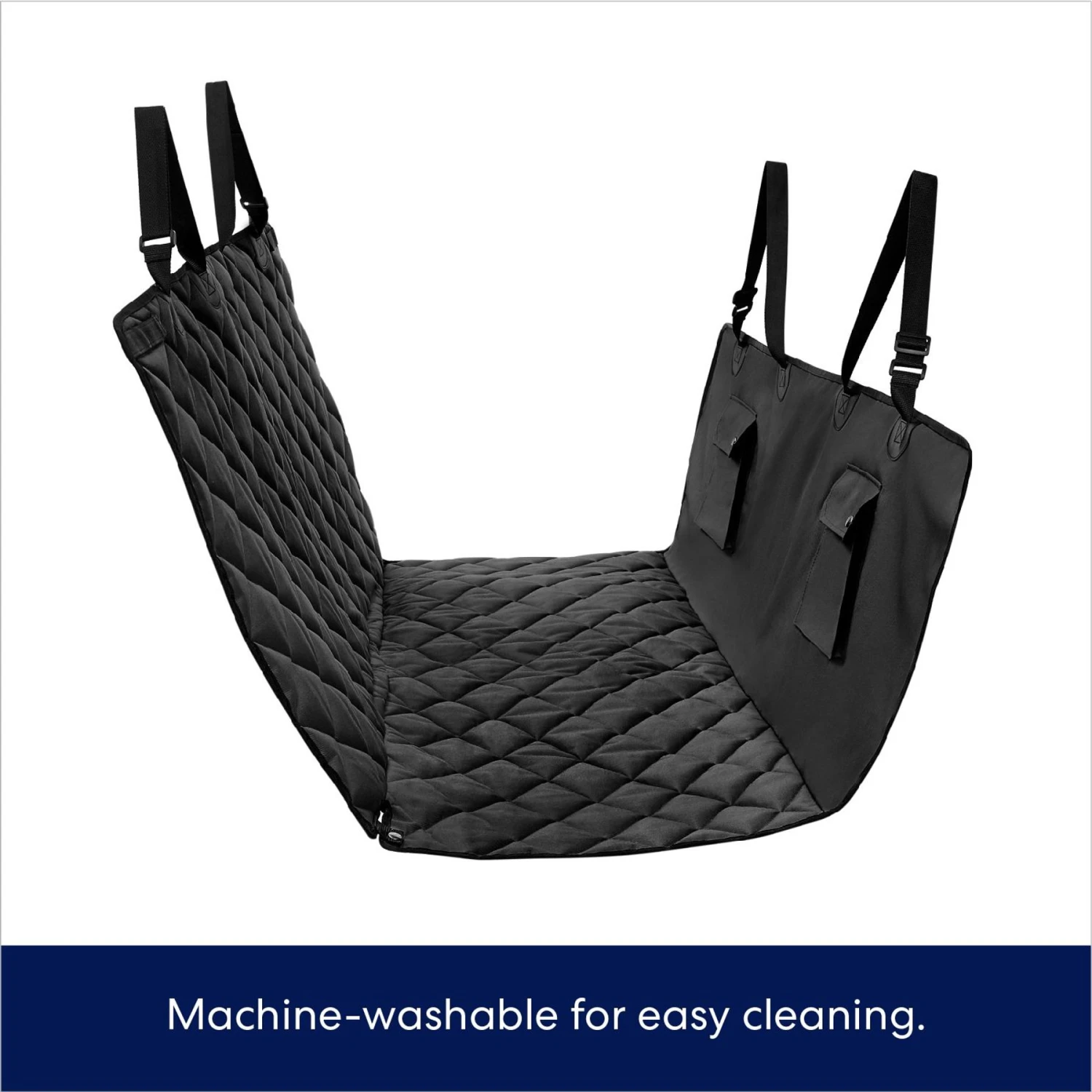 - Designed to fit most car models and built with adjustable straps for a secure fit, extra stitching at attachment points for added durability, and seat anchors to minimize shifting. Machine washable for easy cleanup so you can always be ready to hit the road with your pet. Plus, handy pockets make for easy stow and go.
