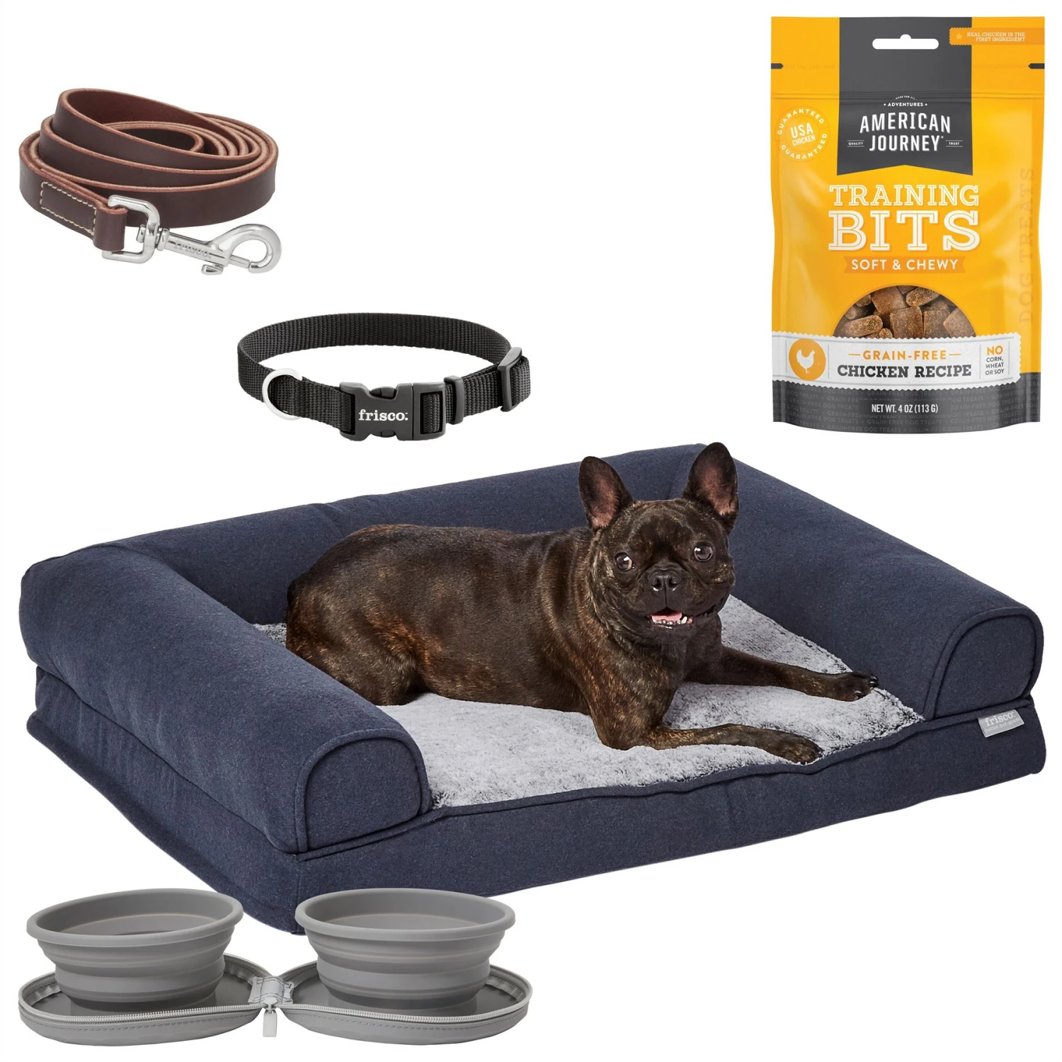 Frisco Top Grain Leather Leash + 4 Items