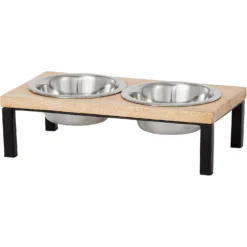 Frisco Wood Elevated Stainless Steel Double Diner Dog & Cat Bowl