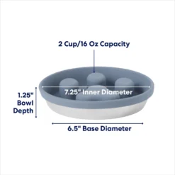 Frisco Silicone Stainless Steel Double Diner Slow Feeder Dog & Cat Bowl, Grey, 3 Cup